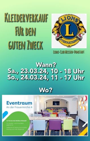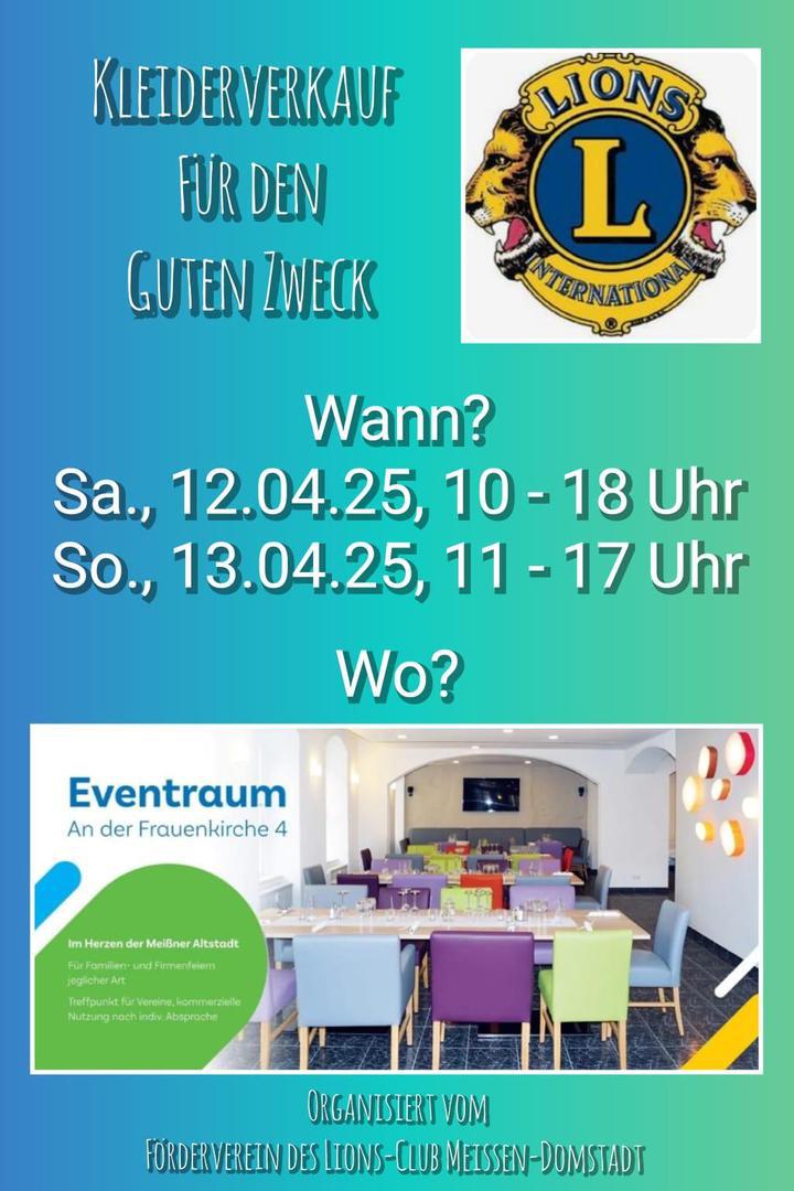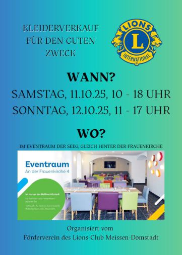 Mit dem Reinerlös des Verkaufs unterstützt der LC Meissen-Domstadt soziale Zwecke in der Region. Kleiderspenden können bis zum 02.10.2025 abgegeben werden