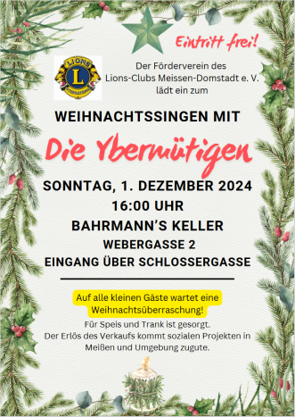 Pünktlich am 1. Dezember fand das Weihnachtssingen mit "Die Ybermütigen" im weihnachtlich geschmückten Bahrmannschen Braukeller statt.